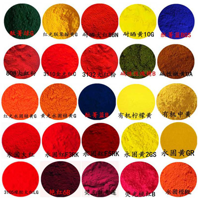 有機(jī)顏料不溶于應(yīng)用介質(zhì),以其特定表面特性的微細(xì)顆粒使物質(zhì)著色,其微細(xì)顆粒可有不同的物理形態(tài),例如:易分散性粉末、擠水轉(zhuǎn)相色膏、水性或溶劑分散劑、顏料制備物(如樹脂色母粒、色片劑型)等。